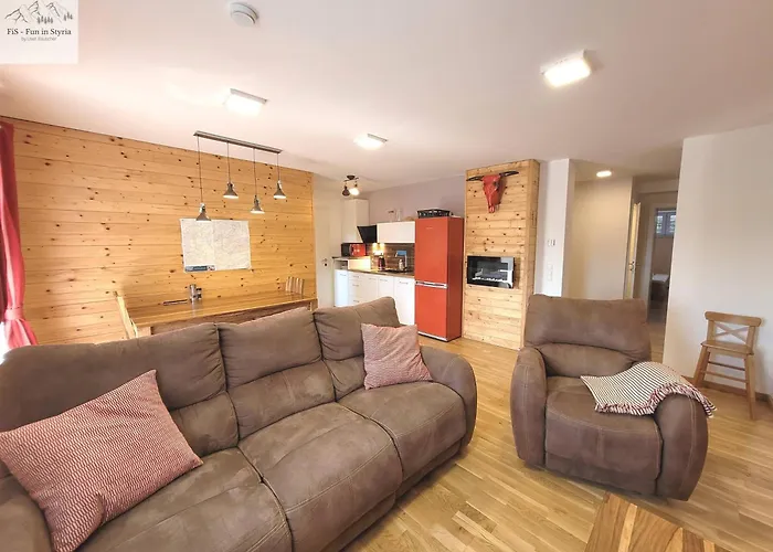 Situato a 2 km di distanza da Kulm, l'appartamento Alpine Tauplitz Top 5 By Fis - Fun In Styria, di 90 m^2, offre un deposito sci e noleggio sci per gli amanti dello sci. Quest'appartamento offre anche Wi-Fi e un parcheggio privato gratuito.